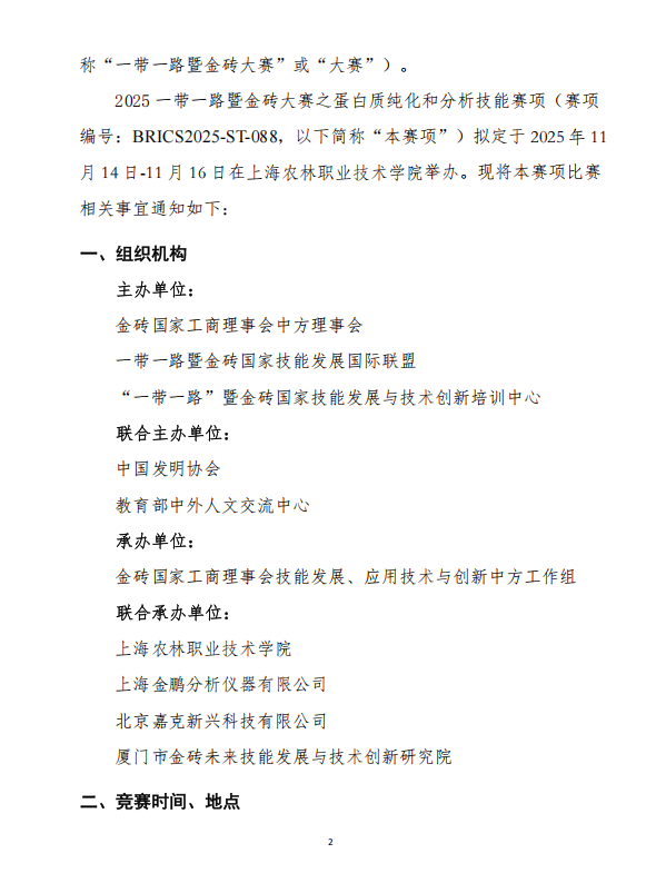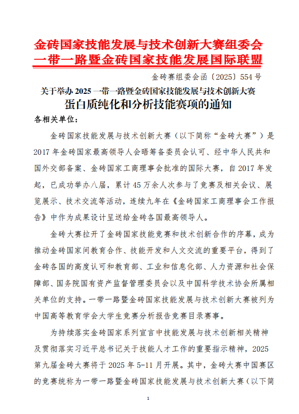 關于舉辦2025一帶一路暨金磚國家技能發展與技術創新大賽之蛋白質純化和分析技能賽項V1